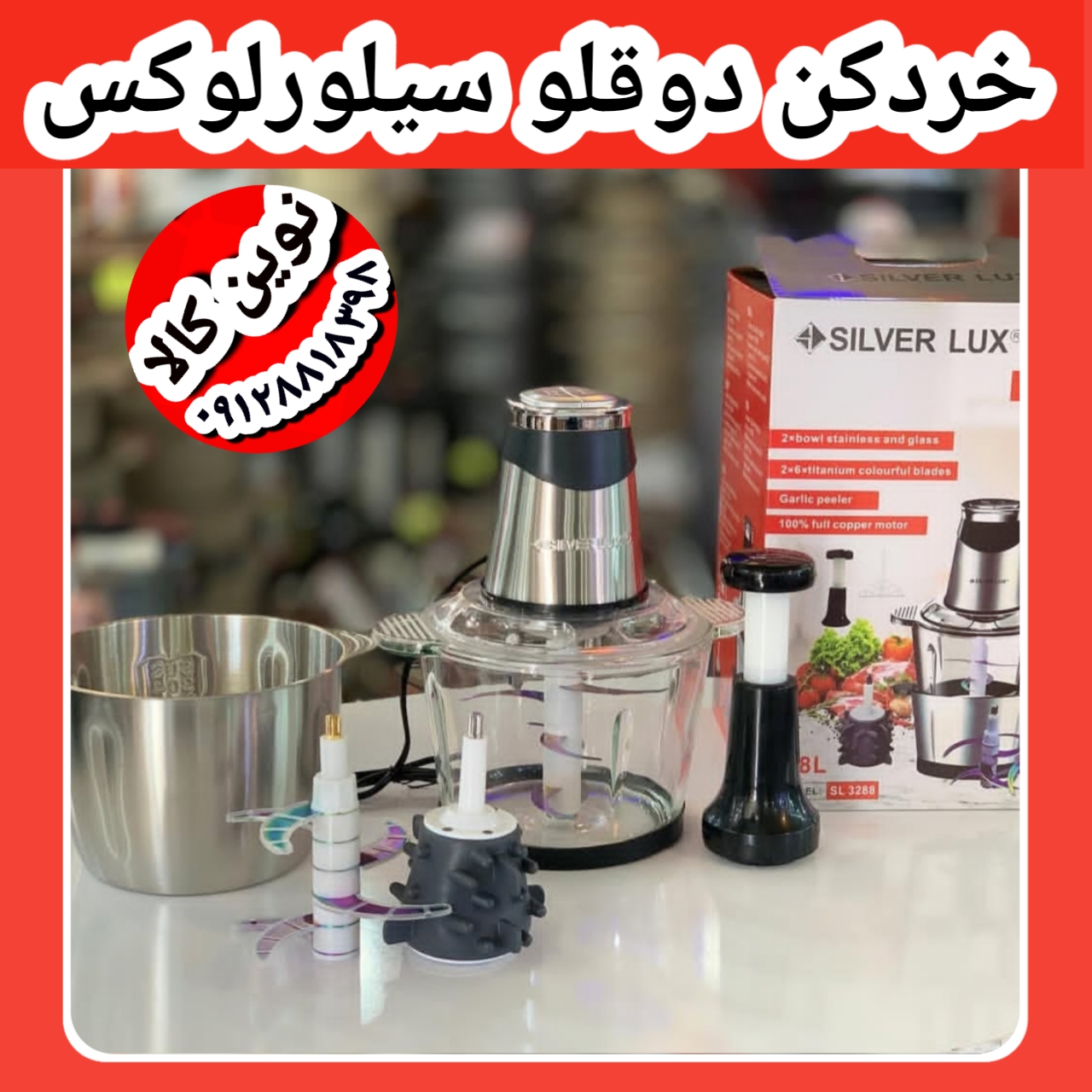 خردکن دوقلو سیلورلوکس ۳۲۸۸ نوین کالا کرج ۶ تیغه و ۶ تیغه زاپاس ۷رنگ کاسه پیرکس کاسه استیل موتور دستی موتور مسی