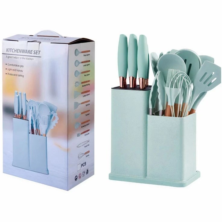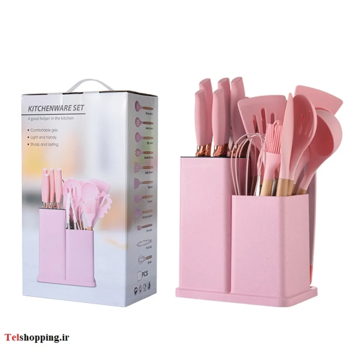 سرویس کفگیر ملاقه سیلیکونی همراه با سرویس چاقو تخته گوشت