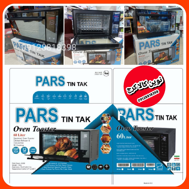آون توستر پارس ۶۰ لیتری مدل برد بغل شیشه دوجداره مدل tintak 60