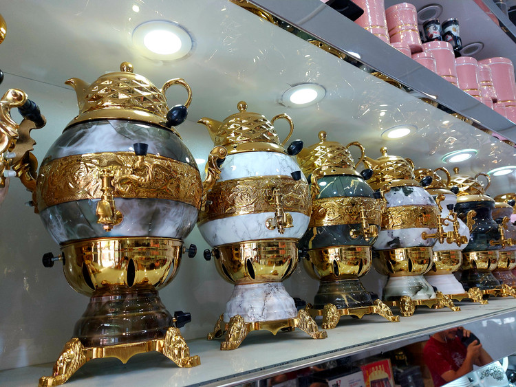سماور گازی ۳ کاره طرح سنگی تمام استیل کمر طلایی