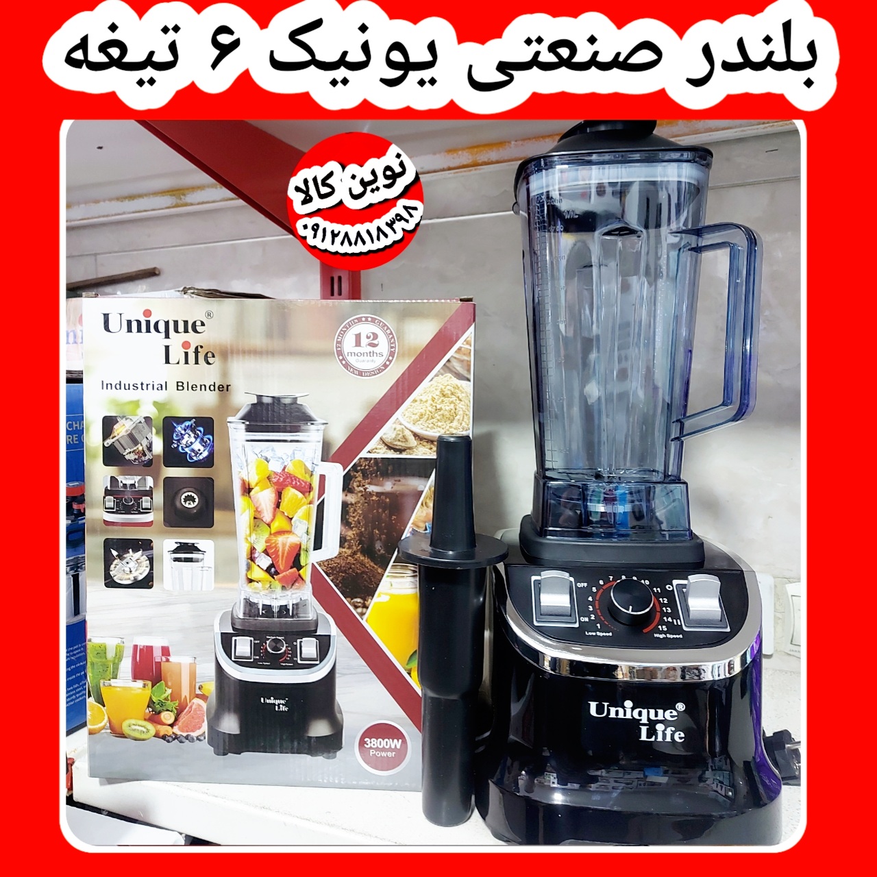 مخلوط کن صنعتی ۶ تیغه یونیک لایف دارای تیغه یخ شکن ۳۸۰۰وات مدل ۲۰۲۳